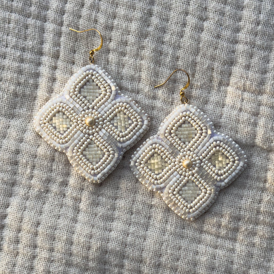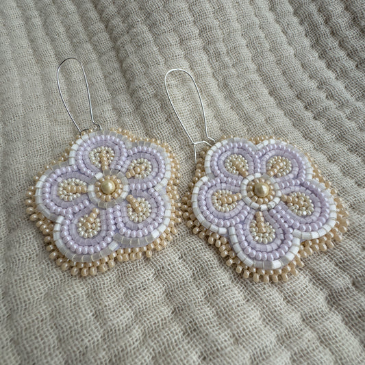 Flower Flat Stitch Earrings on Leather